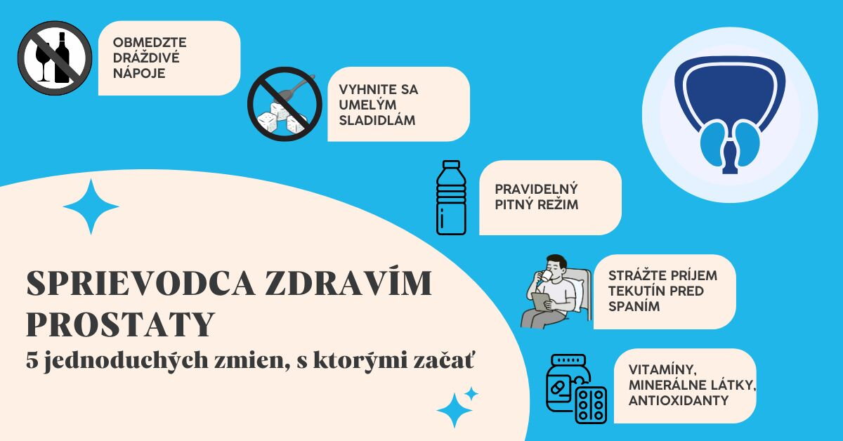 Zloženie jedálneho lístka a výber nápojov majú priamy vplyv na to, ako prostata a močový mechúr reagujú. Zatiaľ čo niektoré látky môžu pôsobiť dráždivo, iné môžu zdravie prostaty ovplyvniť pozitívne. Medzi typické faktory, ktoré môžu vyvolávať väčšie nutkanie na močenie, patria kofeínové nápoje, alkohol, umelé sladidlá a sýtené (perlivé) nápoje. Ich obmedzenie môže priniesť úľavu. Zároveň je vhodné dbať na vyváženú a pestrú stravu s dostatkom ovocia, zeleniny, celozrnných výrobkov a bielkovín. Možné je zvážiť výživové doplnky kombinujúce zložky na podporu mužskej vitality. Ide napríklad o: